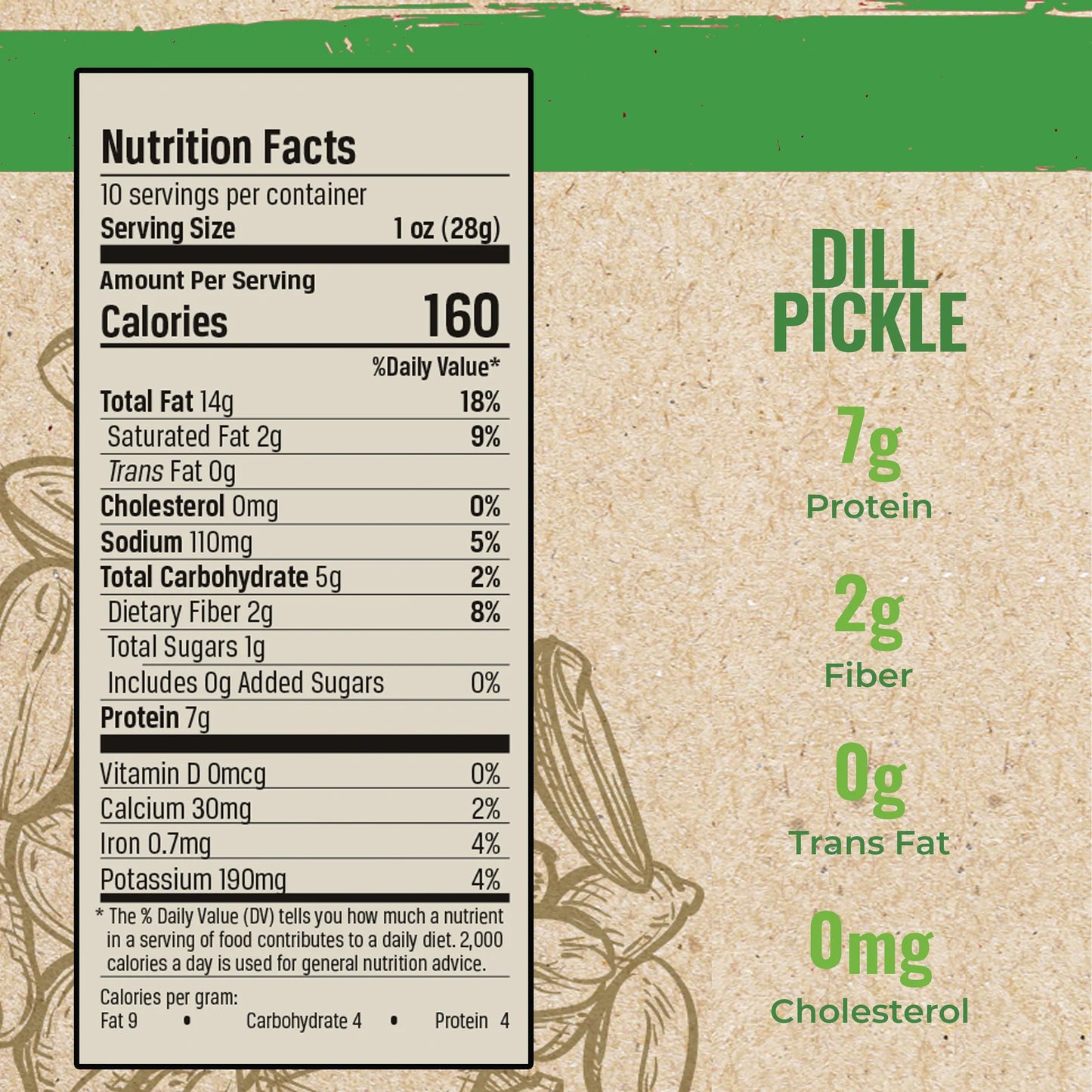 Peanuts, Canola Oil, Dill Pickle Seasoning (Sugar, Sea Salt, Vinegar Powder (Maltocextrin, White Distilled Vinegar), Maltocextrin, Spices (Including Dill, Citric, Onion, and Garlic Powder, Natural Flavors, and Silicon Dioxide Added to Prevent Caking)), Sea Salt.