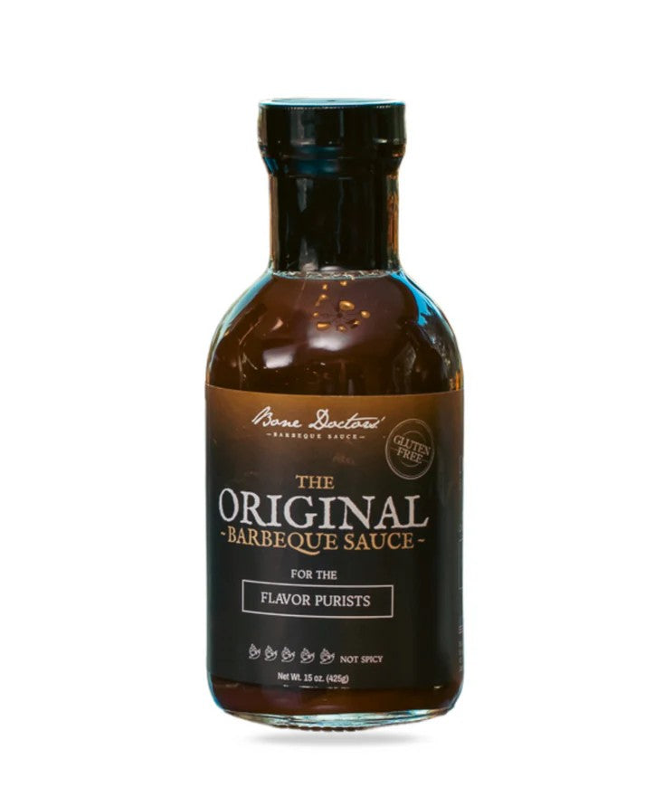 Our signature sauce, Bone Doctors’ Original, combines 60 years of knowledge and passion with premium ingredients to give your next grill creation that real smokehouse taste. True to the chefs who use them, our unique sauces complement the natural, full flavor of your food without disguising it. Our Original Sauce provides distinct sensations on a variety of foods, including pork, beef, poultry, and fish.