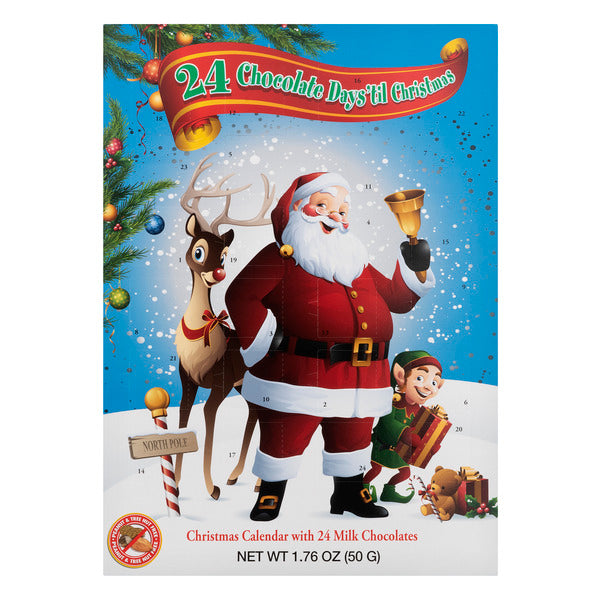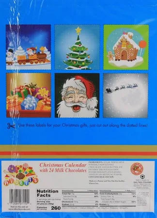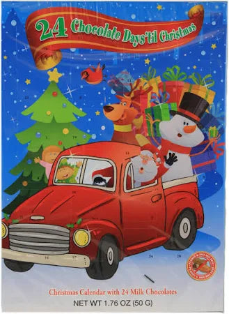 Get into the holiday spirit with our Chocolate Advent Calendar featuring festive Christmas scenes! Each calendar is filled with 24 delicious milk chocolates, perfect for counting down the days until Christmas.