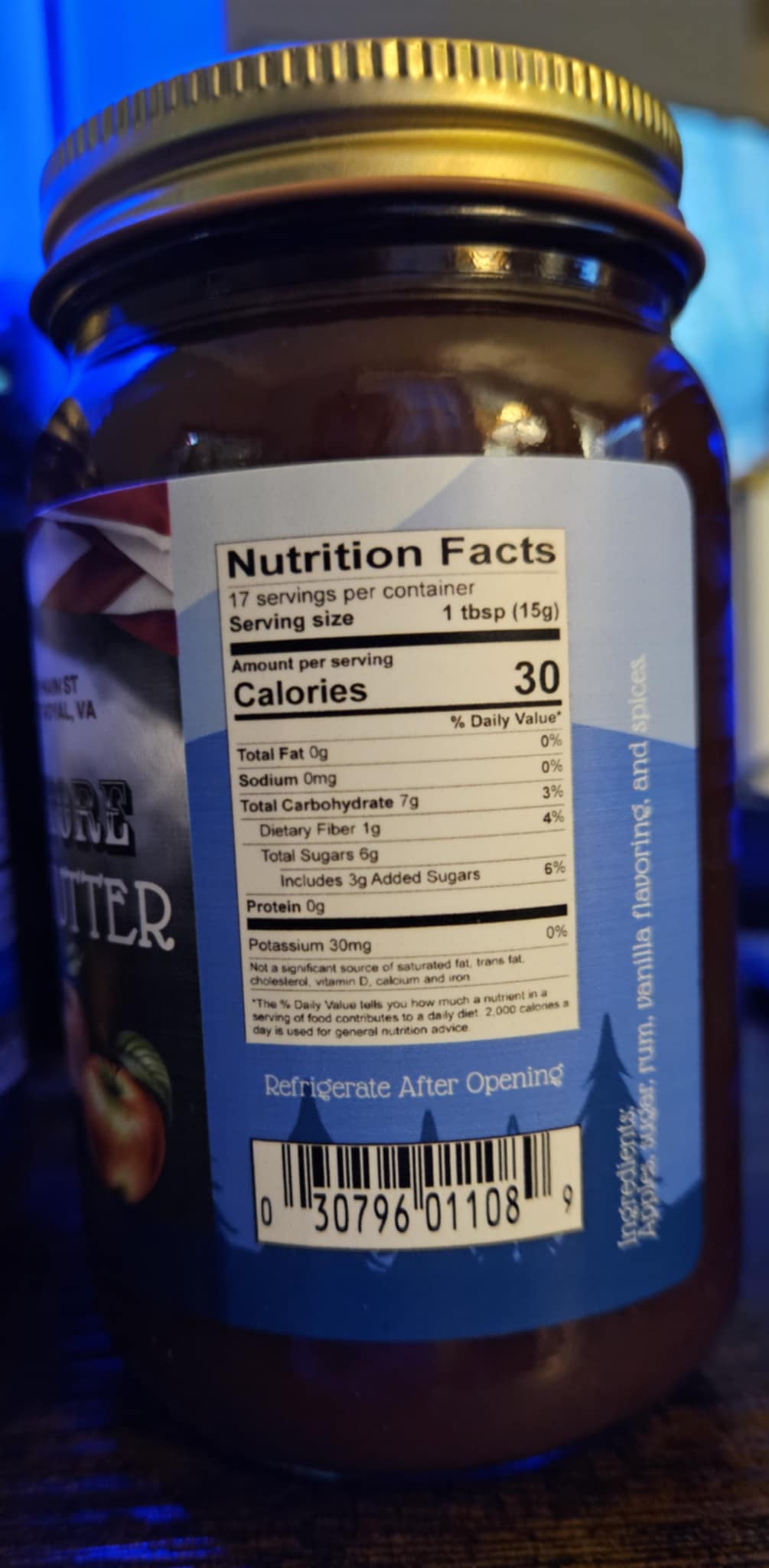 Rum Apple Butter: Ingredients: Apples, sugar, rum, vanilla flavoring, and spices.