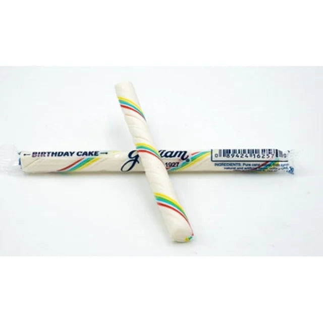 Each piece of old-fashioned Stick Candy is individually wrapped, weighs 0.5 oz, and is 5 inches long. Please note: Stick candy is very fragile, and breakage may occur in shipment. We will do our best to pack it, but we cannot offer refunds or returns.
