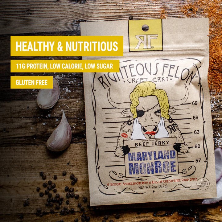 Righteous Felon Maryland Monroe Crab Spice Beef Jerky, 2-oz
